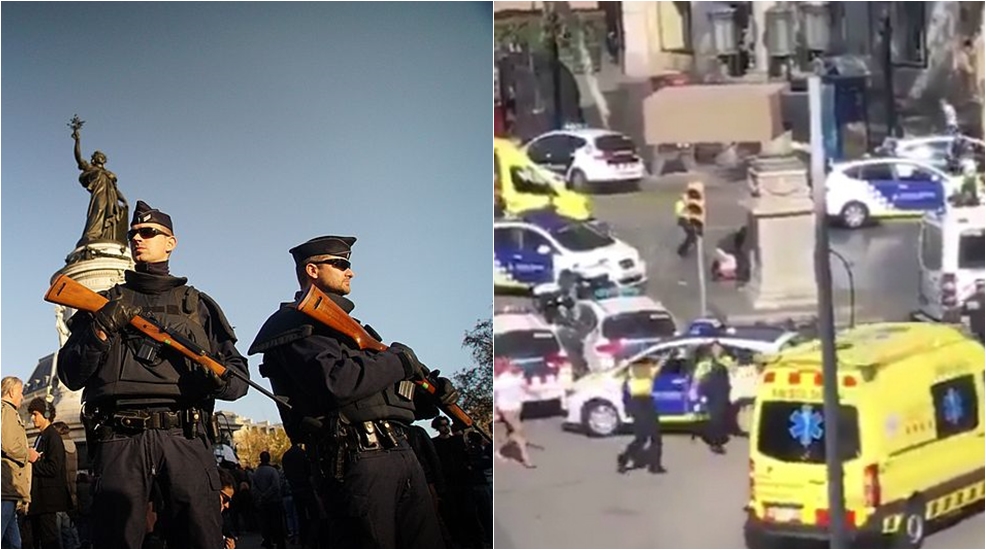 Stan wyjątkowy we Francji, listopad 2015/ Źródło: wikipedia.com/ Barcelona po zamachy, źródło: / twitter.com/printscreen