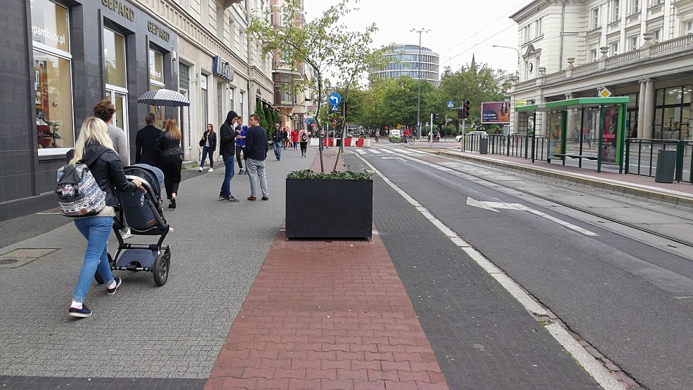 Przypomnijmy, że po zmianach w organizacja ruchu latem zeszłego roku drogę rowerową przeniesiono na jezdnię, a chodnik w całości oddano pieszym - informuje ZDM. Jak dodaje zastępca prezydenta Poznania Maciej Wudarski - Pojawiły się postulaty wymiany czerwonej kostki na szarą. Jednak do tego miejsca przebudowa realizowana w ramach projektu Centrum I dotrze w ciągu najbliższych lat, chodnik, jezdnia, torowisko zostaną w całości wymienione w ramach kompleksowej przebudowy.