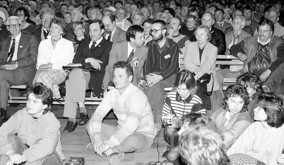 wiec wyborczy Komitetu Obywatelskiego "Solidarność" w Poznaniu w hali widowiskowo-sportowej "Arena" /28.04.1989 źródło:http://cyryl.poznan.pl